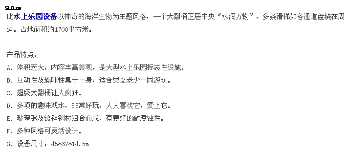 水上樂(lè)園設(shè)施您當(dāng)前的位置:網(wǎng)站首頁(yè) > 產(chǎn)品展示 > 水上樂(lè)園設(shè)備 > 水上樂(lè)園設(shè)施>室內(nèi)水寨
